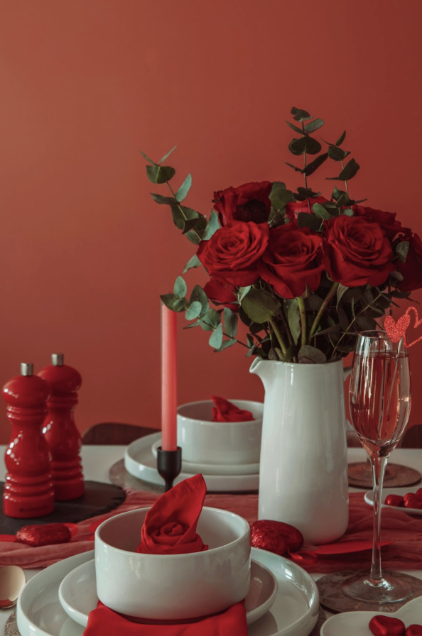 Wherever the party is being hosted, whether it is at your place or a friend's, don’t be shy with the decorations. Decorations do not have to be expensive or tiresome, and I would recommend using what you have first before buying anything new. You could make paper chains with colored construction paper (or even plain white paper) to hang from the ceiling or in doorways. Tall candles can act as table centerpieces next to flower bouquets with pink or red ribbons tied around the vases. You could create adorable name tags to place on plate settings at the dining table. If you want to buy decorations second-hand, I would recommend thrifting cute frames for pictures, printed out drink menus, or even sweet handwritten messages for your guests.